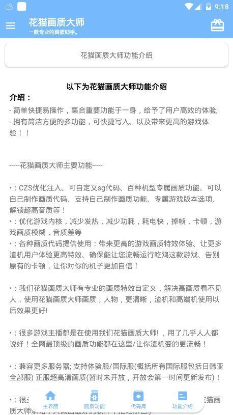 花猫画质助手9.6最新版是一款可以帮助稳定提升游戏画质的软件。喜欢玩吃鸡的朋友应该知道高清画质对游戏的影响。华茂画质助手9.6正式版更加稳定好用,您可以放心使用。有需要的话不妨下载体验一下!
