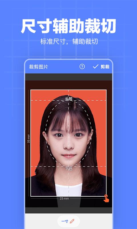 1. 应用程序支持多种ID 大小。无论您想要哪种资质规模,都能满足。打开尺寸即可快速拍摄证件照;