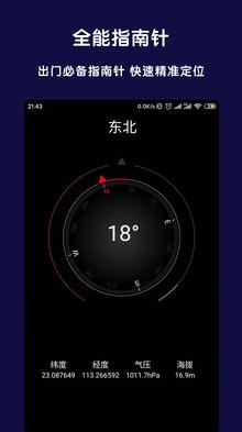 2、为用户提供方位指示、现实量角器、水平测量仪等功能。软件体积小,不占用内存。内容简洁,无广告。是一款出行必备软件。