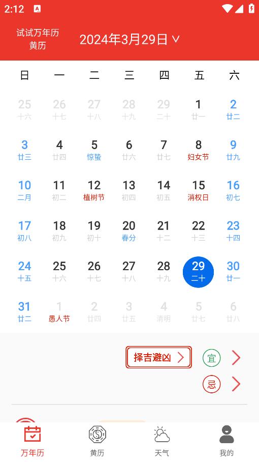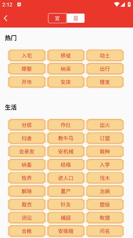 1、多种节假日时间可选,随时随地查看各种禁忌日期。
