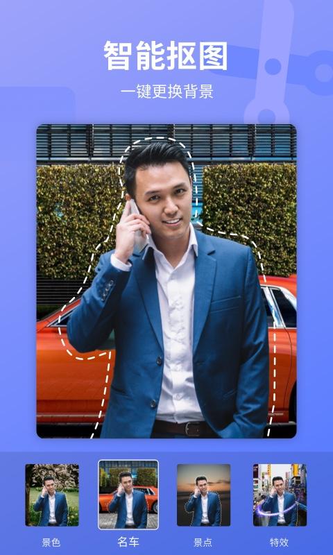 2.回到过去,穿越未来,一键换背景,海量炫酷壁纸,给拍照带来新灵感。