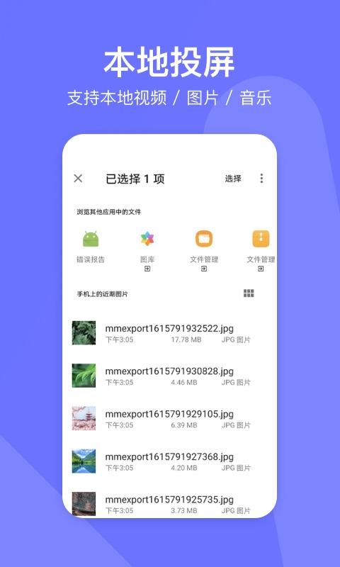 1.搜索本地截屏:支持视频、图片、音乐截屏,可预选或可选。一站式投屏,方便快捷。