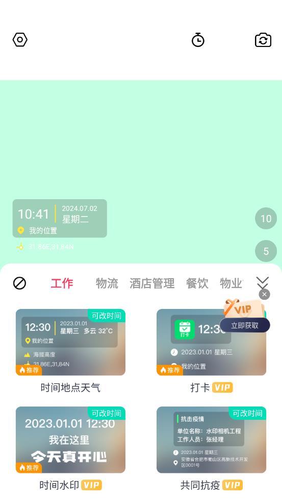 水印相机录制应用可以为照片实时添加地理位置标签,帮助用户轻松记住拍摄地点。支持即时视频和照片拍摄,确保您不错过任何精彩瞬间。该应用程序还具有强大的签到功能,让拍照过程变得有趣而有意义。此外,应用程序提供了多种精美的滤镜和特效,可以大大增强照片的艺术效果。