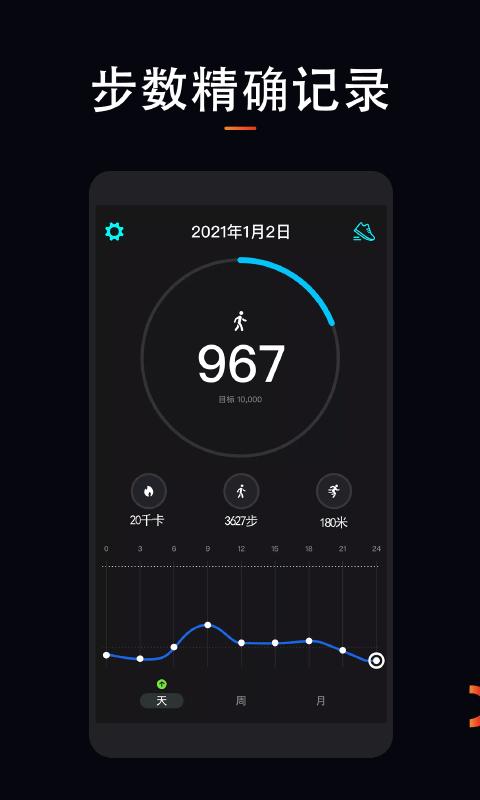 1、可以记录您每天的运动指标,量化您的个人健康状况,帮助您实现健康目标;