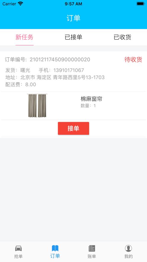 3.可实时在线抢单。爱家宅配app可以让您获得更多的订单使用。