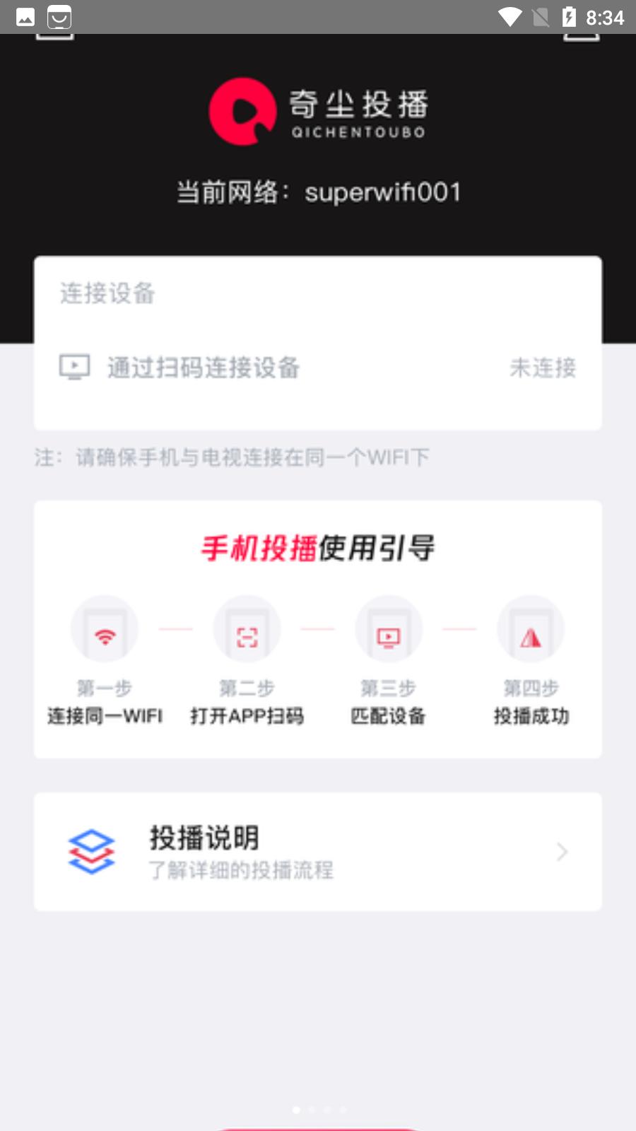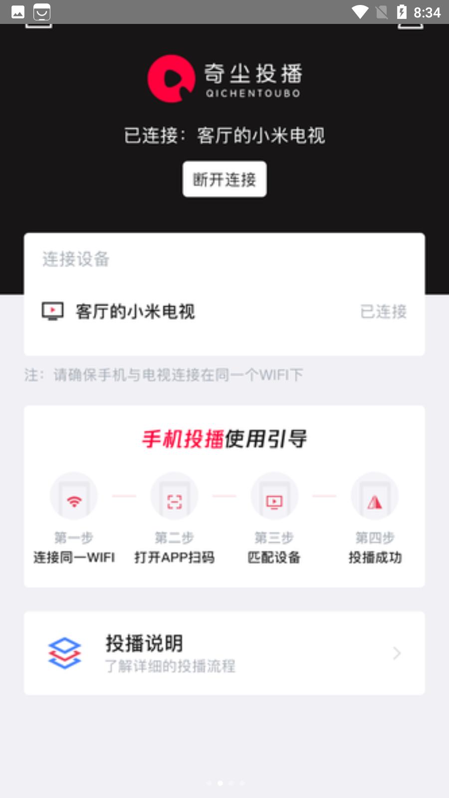 广播操作无门槛。扫描二维码立即投播观看。可以随意投播全网的视频,手机能播放的都可以播放。
