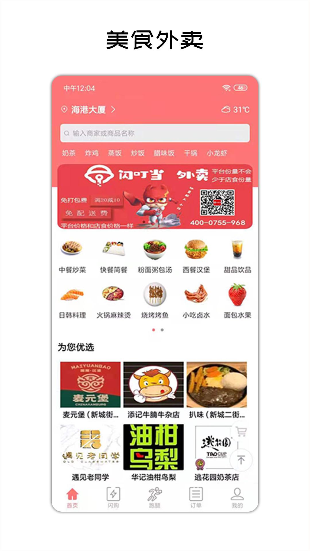 3、软件除了大量优质外卖商家提供点餐服务外,还有更丰富的闪购跑腿服务模式。用户可以选择附近的各种超市、药店、花店等进行搜索和下单。