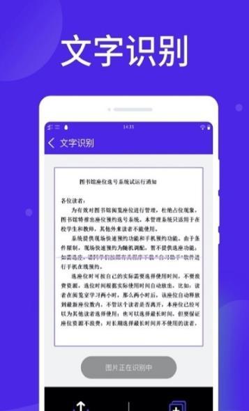 【全方位扫描】对识别出的文本进行校对,并可以复制、分享或另存为文本。支持文本翻译功能,一键翻译语言。