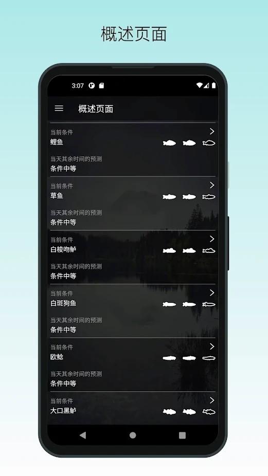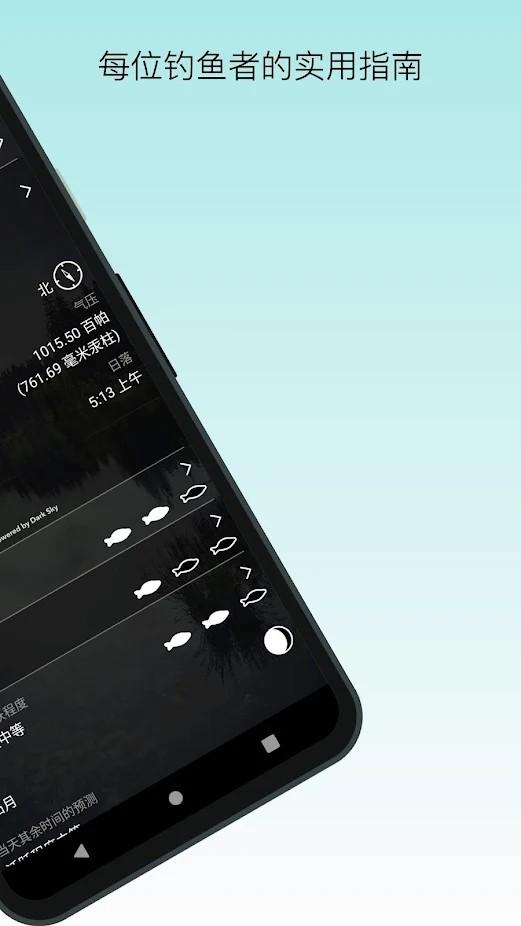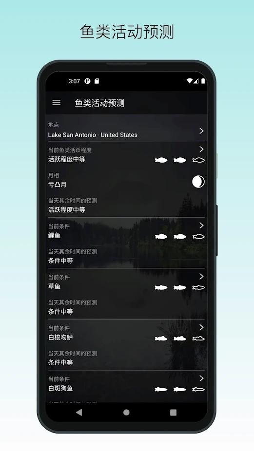 对于每个知道钓鱼不仅仅是运气的垂钓者,它还是一个实用的顾问。根据位置,天气和季节的数据,可以计算和预测淡水鱼类和捕捞条件的活动水平。