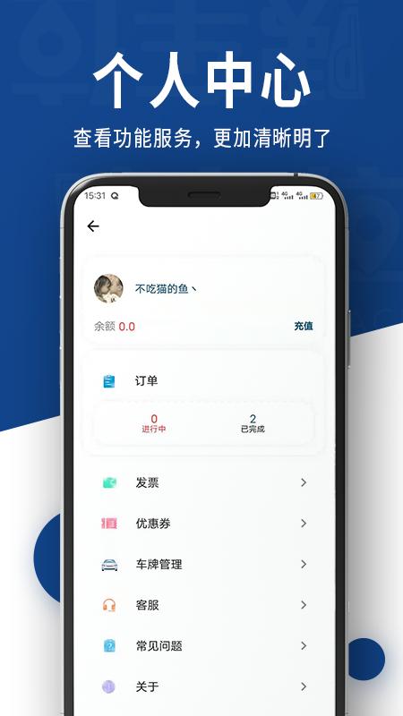 2。方便:绑定手机号码的车牌号码,并实时检查并支付停车费。