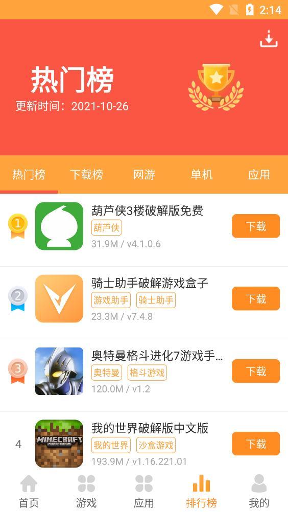 1。游戏盒的桌面接口设计非常简单,可以吸引许多玩家下载。