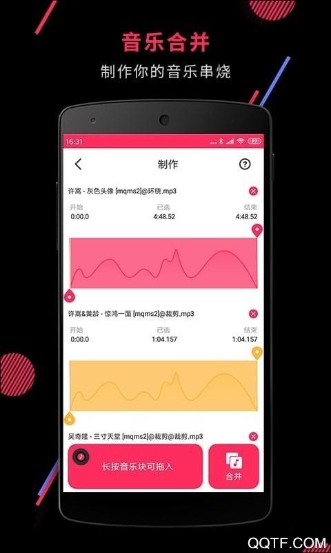 4。音频合并:各种音频,无缝的剪接和合成,编辑您喜欢的音频铃声mp3;