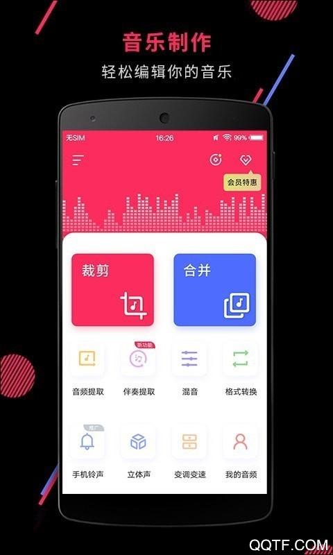 音乐编辑,铃声制作,双麦克风立体声录制,改善录制质量的过滤器,可以将录音片段设置为铃声,音乐音频剪辑可以满足您在不同场景中的高质量录制和音频剪辑和音乐播放器的需求。
