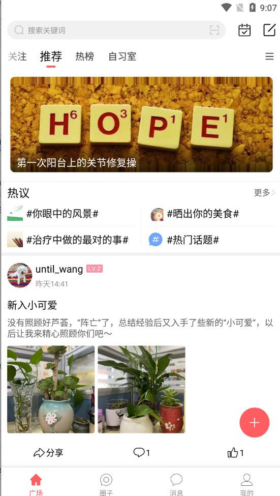 软件中可以自由的分享你想要说的,比如好看的风景日常的生活,生病了也要保持乐观开朗的心情,有各地的朋友会陪你渡过困难时光。