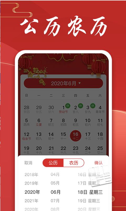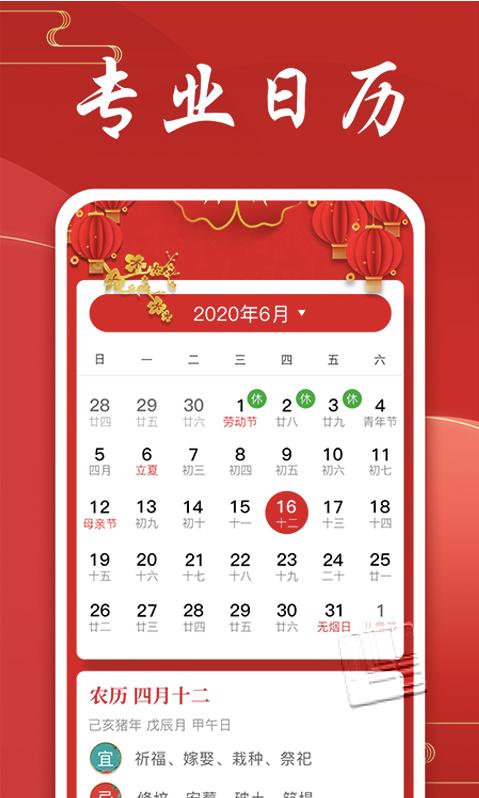 中华万年历好运吉日app一款日历查询软件,让您快速掌握日历时间,让您了解相关公历、农历和周期,以及国家法定节假日的安排,节假日安排标注 以标语为标志的录音安排,让公众了解工作和休息的日期,可以在线查看年历的状态,选择需要查询的日期,可以知道年历的安排,同时还提供天气预报,及时了解当地天气变化,及时掌握信息。