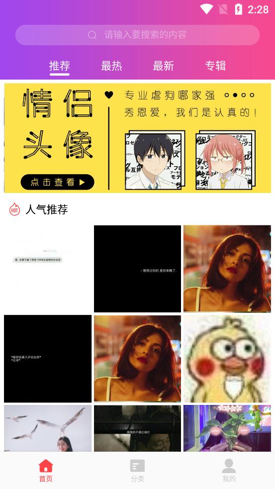 头像吧app是一款非常好用的头像图片软件,这款软件非常强大,软件拥有非常多适合各种各样类型的图片,男生、女生、动漫、卡通、文字、情侣等等等类型都可以用找到,用户使用这款软件可以找到心仪的头像,这是非常值得高兴的一件事,有时候为了想换一张头像而逛各种网站就是几个小时也找不到一张好看的头像,有了这款软件就再也不用担心了,喜欢这款软件的小伙伴赶紧来下载使用吧。