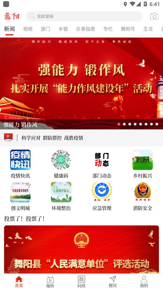 云上舞阳app是专为舞阳县制作的融媒体移动平台,平台拥有新闻资讯,问政,视听,便民等等功能服务,可以帮助更好的引导及服务舞阳县。