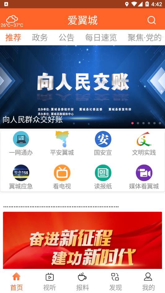 爱翼城app是专为翼城县制作的融媒体移动应用,软件拥有新闻资讯,视听,爆料,发现等等功能板块,是引导及服务翼城县的掌上好帮手。
