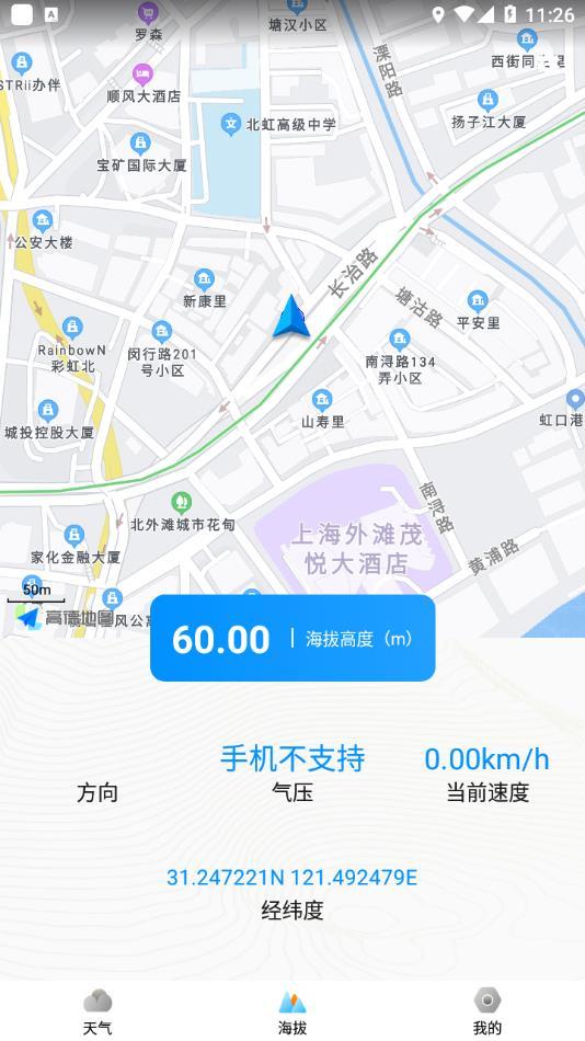 简单好用的海拔工具、帮助您随时查看当前海拔高度,位置,经纬度等。