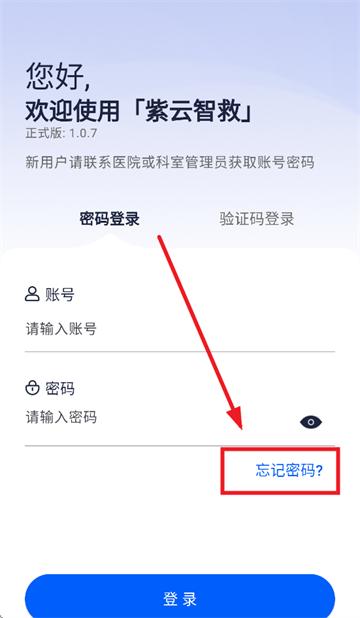 下载安装并打开紫云智救APP,进入登录界面后点击忘记密码