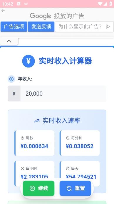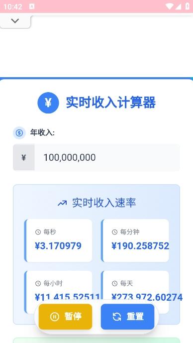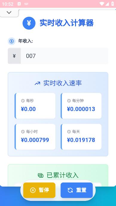 实时收入计算器app是一款非常好用的计算工具软件,这款软件可以帮助大家轻松的来计算实时的收入数据,可视化你的年收入转换成每秒、每分钟、每小时和每天的收入,帮助大家更清楚的了解自己每天的收入来源和金额,感兴趣的朋友快来下载使用吧。