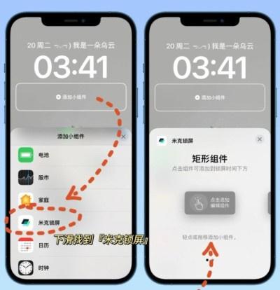 2.点击中间的【添加小组件】下滑找到【米克锁屏】你可以根据需求添加矩形组件或圆形组件。