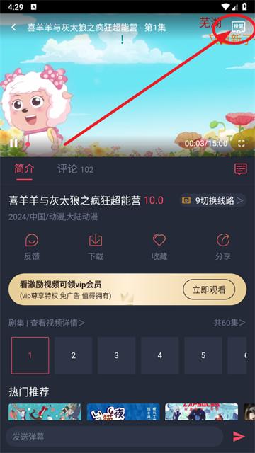 然后选择要看的动漫,点击播放按钮就可以了,比如小编追的沧元图;