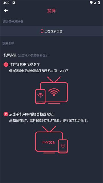 3、点击投屏操作,选择搜索到的投屏设备,即可完成投屏操作