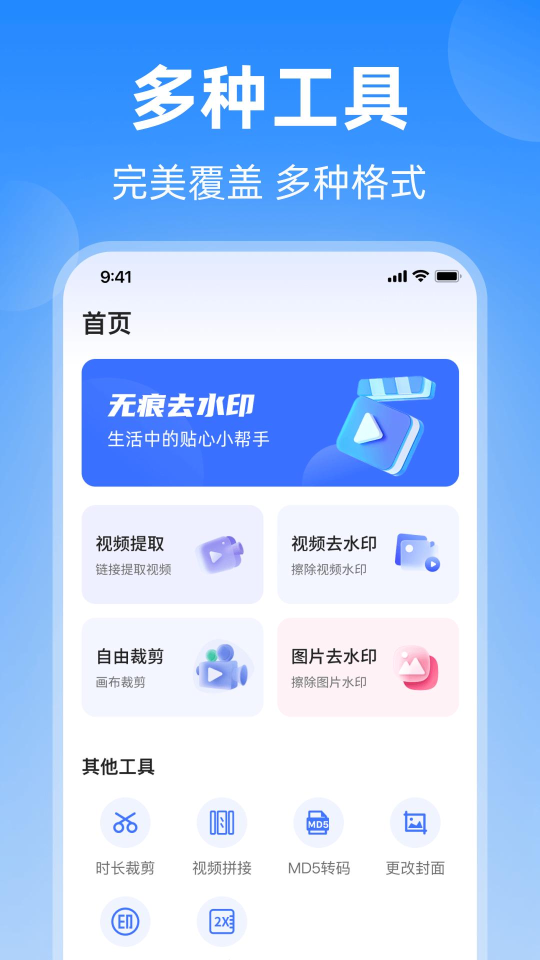 万能去水印大师是一款非常实用的工具,实用功能非常多,例如 无痕去水印,视频水印,自由裁剪,图片去水印,同时还有图片压缩,查看网络信息,生成二维码,长视频拼接等等,真的非常实用。