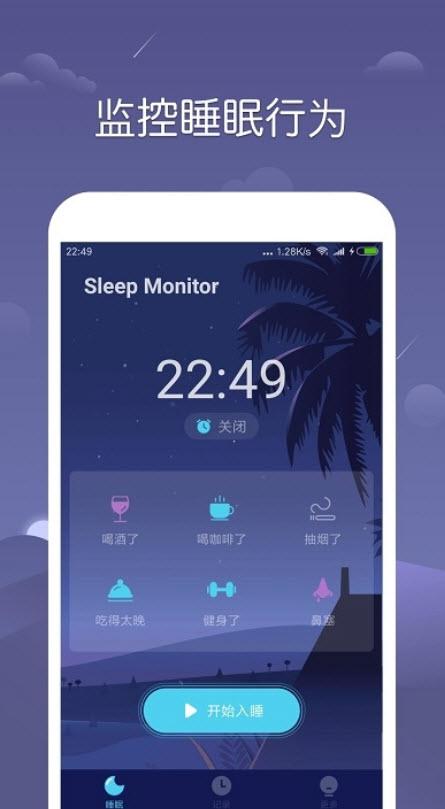 sleepmonitor pro睡眠辅助app利用现代手机各种强大的传感器,这款软件可以全面监测用户的睡眠状态,使用AI进行判断,用声音判断你的睡眠状态,让你知道自己在夜间睡眠状态是一个不错的选择对于想知道自己睡眠状态的用户!