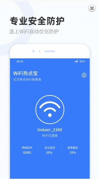 WiFi热点宝app是一款能够支持免费连接海量的WIFI热点的实用工具软件,无论用户身处何地都可以通过软件来连接公共网络,从此告别所有的断网模式,节约用户的流量,同时软件上构建了完整的安全服务功能,能够帮助用户检测和识别公共网络的情况,保证用户的网络安全。