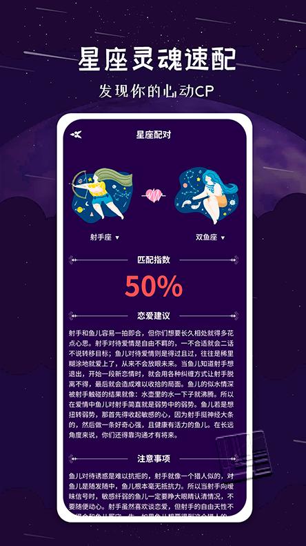 2.提供算命、星座配对、许愿流星等多种功能,操作非常方便。