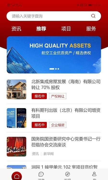 壹资产app是一款非常专业的资产交易软件,软件中有非常多的服务,还有非常多的功能和项目,平台中的所有项目都有第三方的机构监督的,用户可以在平台上能够随时随地的了解相关的信息,是航空工业集团专门为改革企业提速升级的,能够在平台内发布多个项目信息的推广。