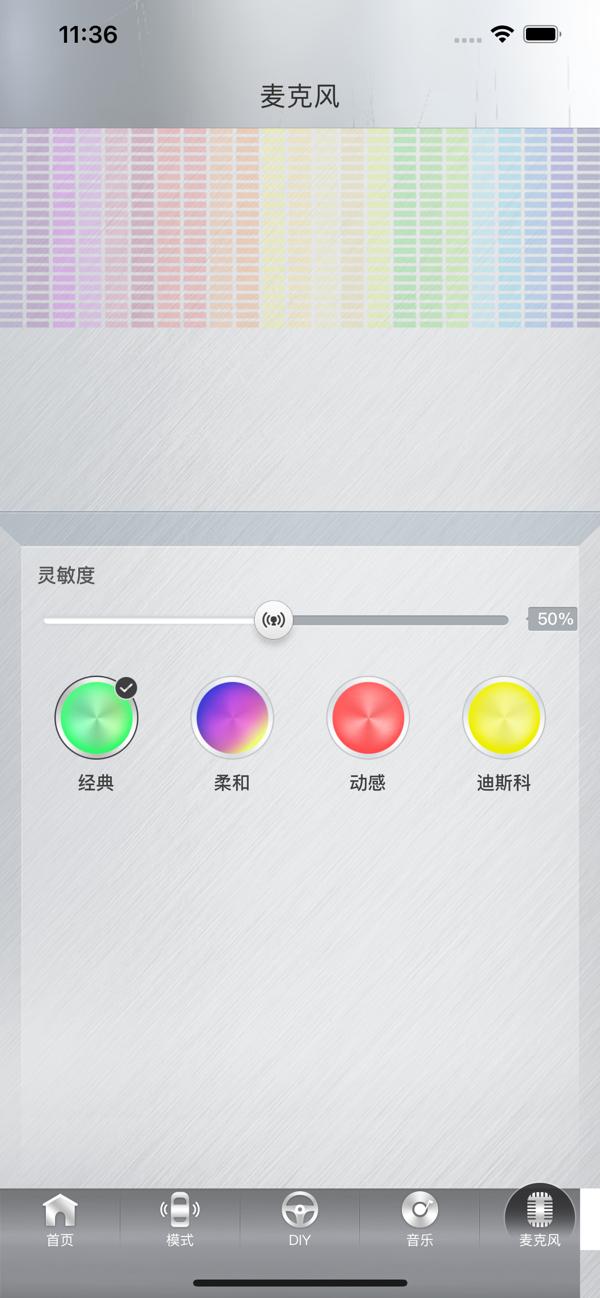 3、具备颜色控制、led色温控制、色彩控制、音乐控制和麦克风控制。