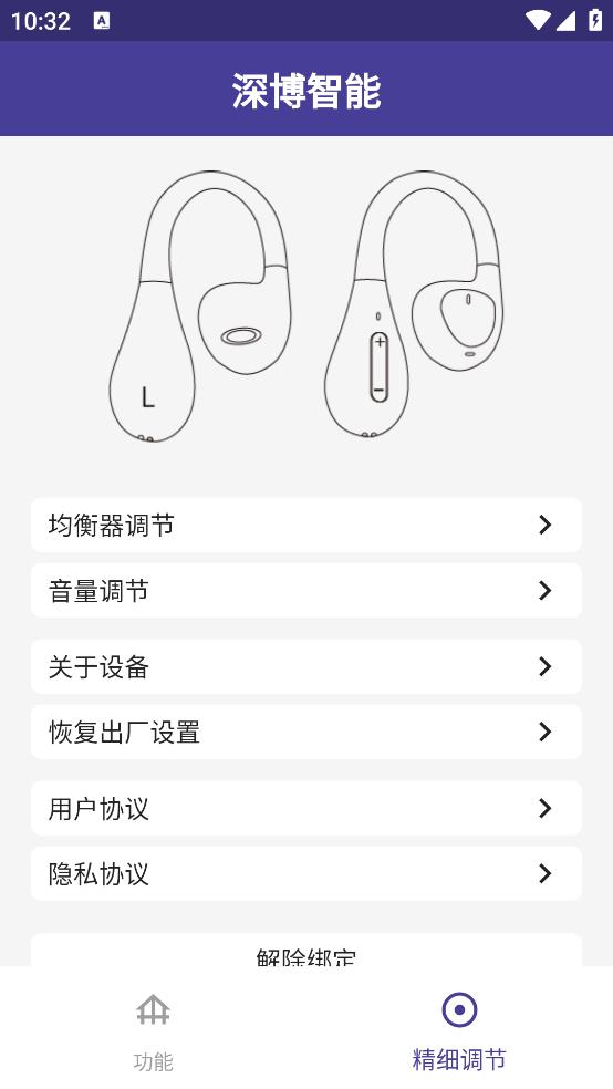 深博智能APP使用一款蓝牙耳机的手机管理软件,这款软件主要就是针对于比较特定的蓝牙耳机,软件通过蓝牙连接蓝牙耳机从而看出蓝牙耳机的相关问题,从而进行管理,在软件中用户可以看到蓝牙耳机的基本信息,如果对蓝牙耳机的一些设置不满意可以软件提供的相关的功能进行调整。