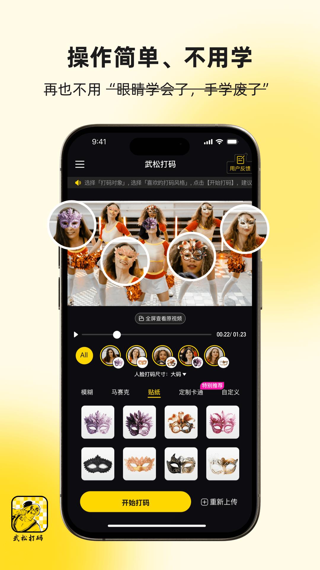 武松打码还提供了卡通定制打码模版服务,不仅自动打码,而且是更好看更特别的打码,让照片和视频更有趣、更个性。