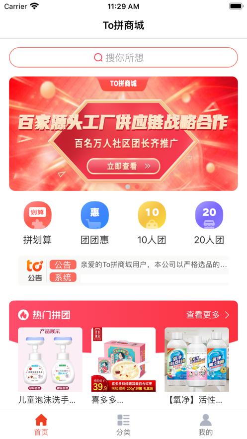 To拼app是一款全新的拼团电商购物拼团,拼团拥有丰富的拼团购物模式,可以给予用户更有趣省钱的购物方式,喜欢网购的朋友欢迎前来下载使用。