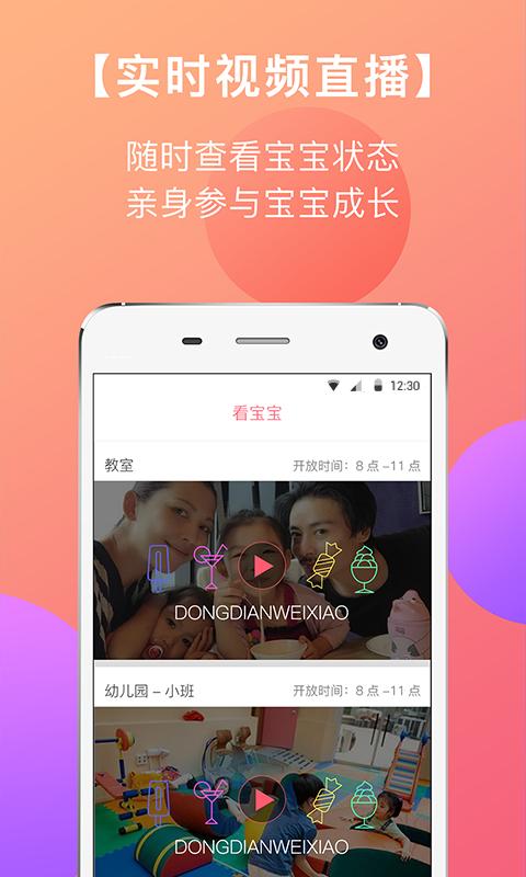 1、实时查看园所视频直播,清晰了解宝宝在园的一举一动