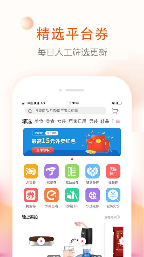 提供拼多多淘宝京东唯品会美团天猫超市等等商城优惠券,以及外卖、出行、打车、快餐优惠券等等的综合性优惠券APP!