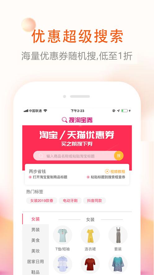 优惠券类目齐全:在淘宝、唯品会、京东、拼多多等等买女装、男装、内衣、母婴、化妆品、鞋子、包包、美食都可以返利,购物优惠券省钱服务!