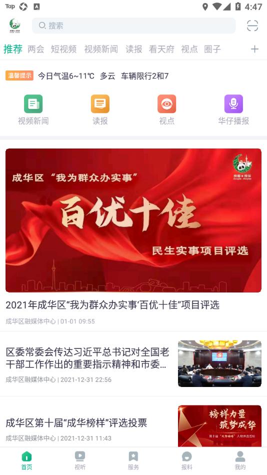 “成华发布”移动客户端提供新闻资讯、视频直播、短视频、政务及生活服务等主要功能,