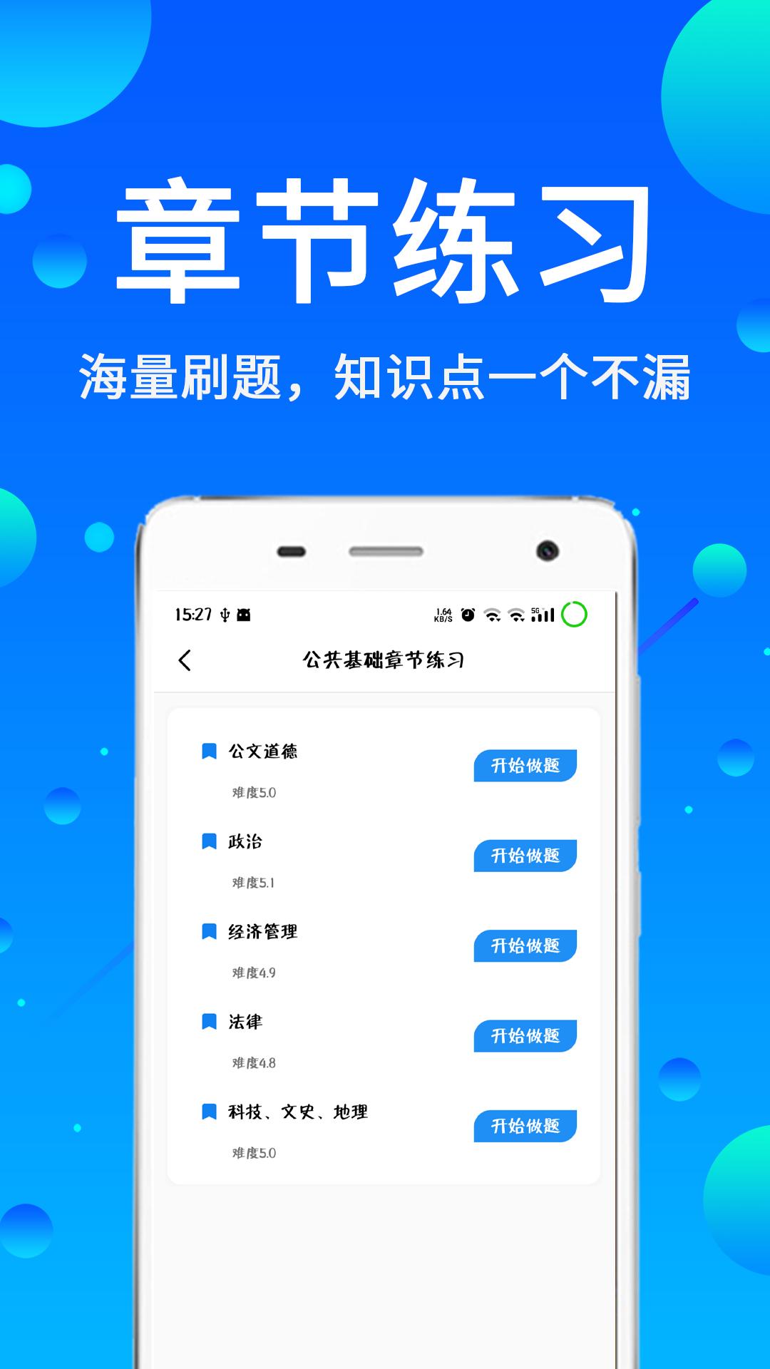 为公务员朋友提供的试题库服务包括各类例题和明年的实用题,可自由选择。