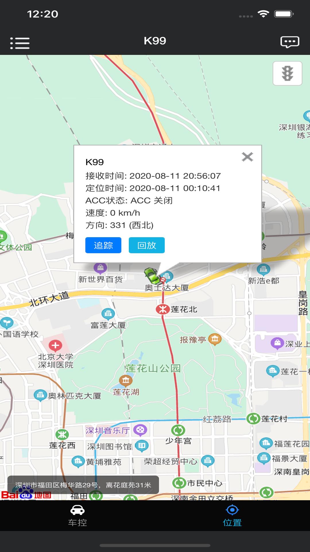 随时查询车辆当时电压、速度、车灯、车门等状态。