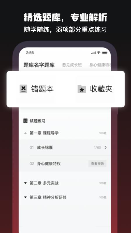 1、在线题库:专业的在线考试题库,支持章节练习模式、历年真题;包含单选、多选、问答多种题型,让你充分掌握学习内容,充足备考;