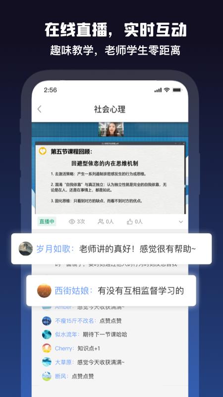 2、课程学习:名师授课,讲授精华课程,带你实时互动学习,每节课都有课程回放,同时可以离线下载随时随地学习。