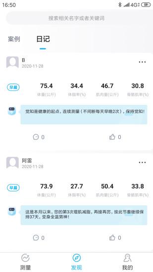 可以看到身体成份指数从而判断身体健康状况,用户可以通运动前后;