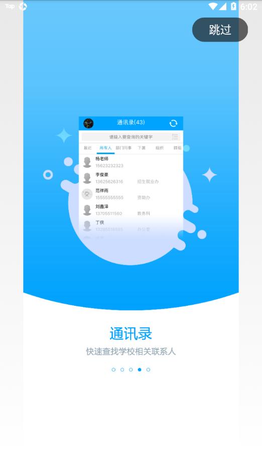 可以查看学校通讯录、公文、通知公告、教职工工资、课表、考勤、校内活动、课堂考勤、学生信息查询、一卡通、学生操行、节假日留校等学校移动应用。