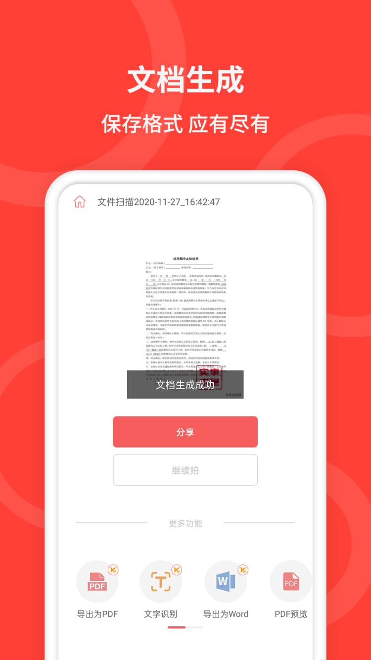 •文档扫描:智能识别文档生成扫描件pdf分享和导出