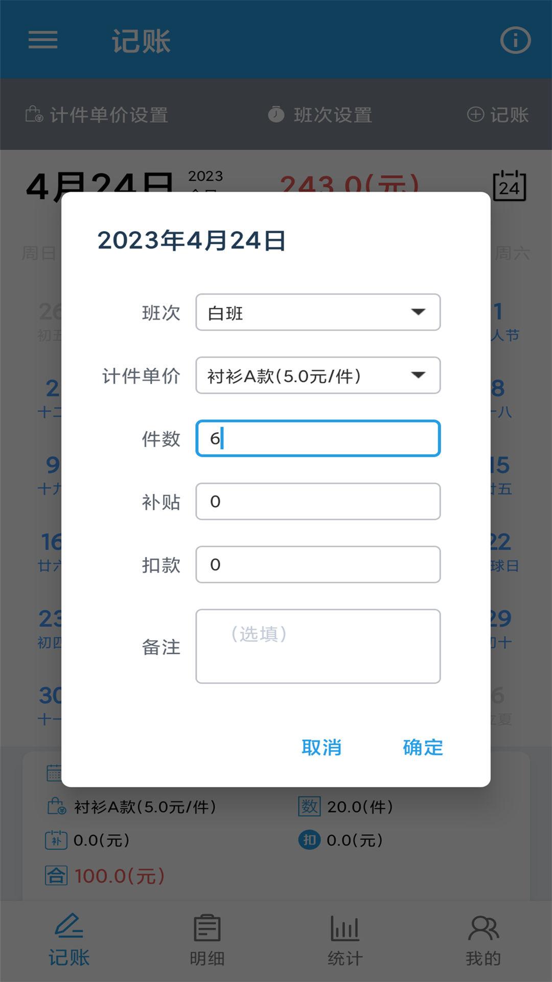 计件工资助手一款方便实用的计件工具软件,在您输入工作数量等相关信息后,就可以快速计算出每天的工资;还可按多种组合条件计算一个时间段的计件数量、计件收入、补贴金额、扣款金额、计件明细等。