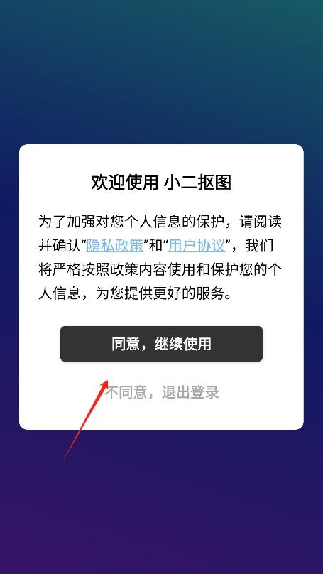 2、进入后首先阅读并同意小二抠图app的用户协议